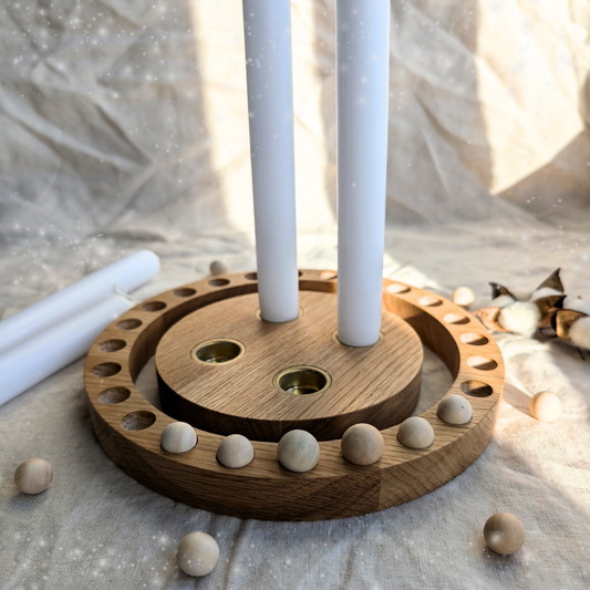 Holzlinge Adventskranz aus Eiche – Mit Kerzen & täglichem Murmel-Ritual