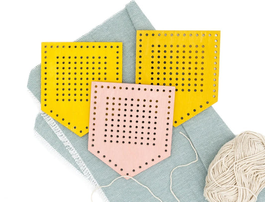 Holzlinge Wimpel (gelb/rosa) zum Sticken (3 Stück)