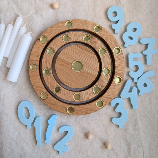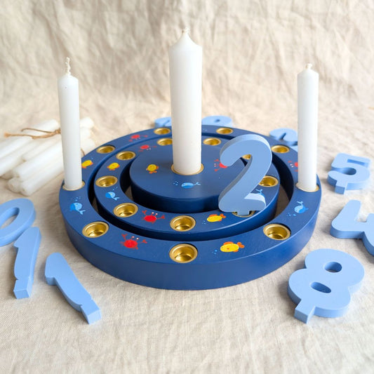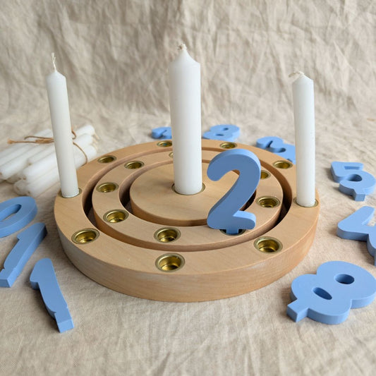 Unsere Geburtstagssets enthalten alles, was du für ein schönes Ritual brauchst: einen handgemachten Holzring, eine passende Kerze und einen Zahlenstecker in deiner Lieblingsfarbe – liebevoll zusammengestellt und günstiger im Set.