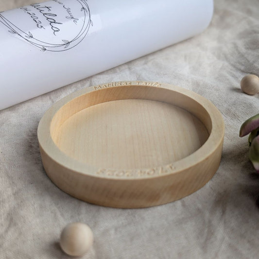 Taufkerzen-Untersetzer aus Ahorn – optional personalisiert & im Set mit Kerze